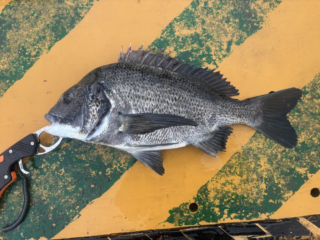 浮かせたのは35cmほどの黒鯛。午前中で既に三枚目を数える。