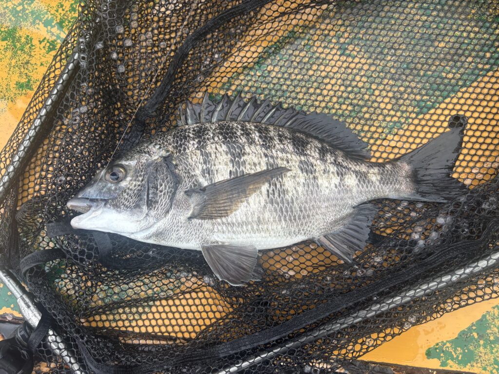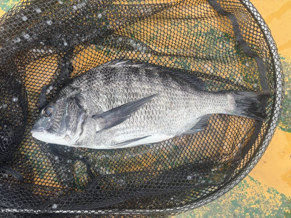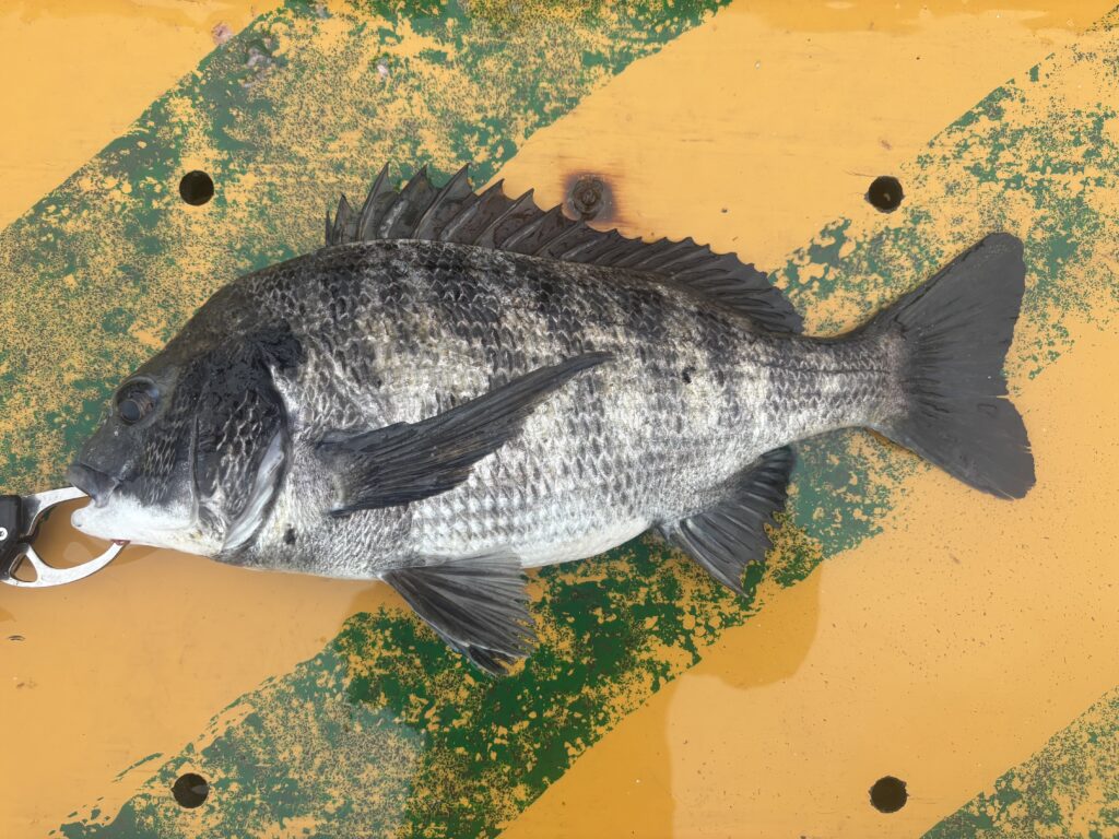 横っ走りされながらもドラグを調整し、なんとか浮かせたのは40cmほどの黒鯛。