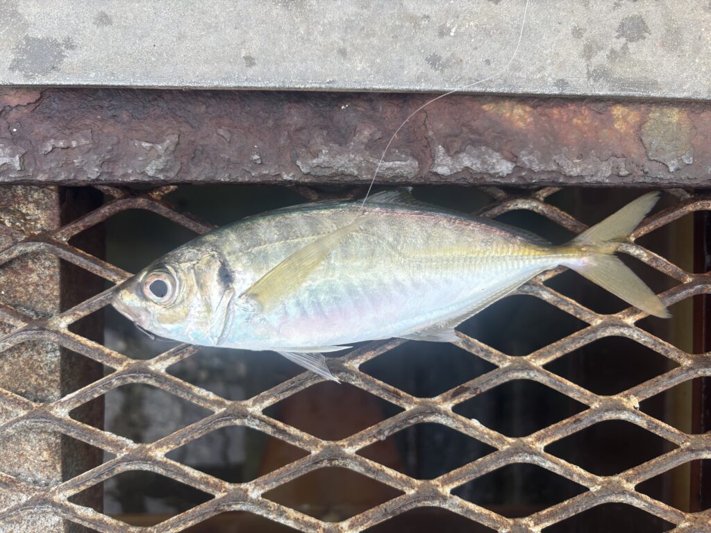 海面に浮いたのは良型のアジ。