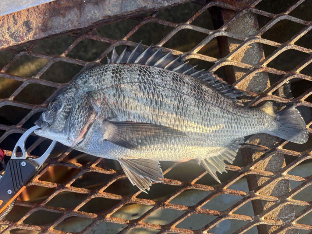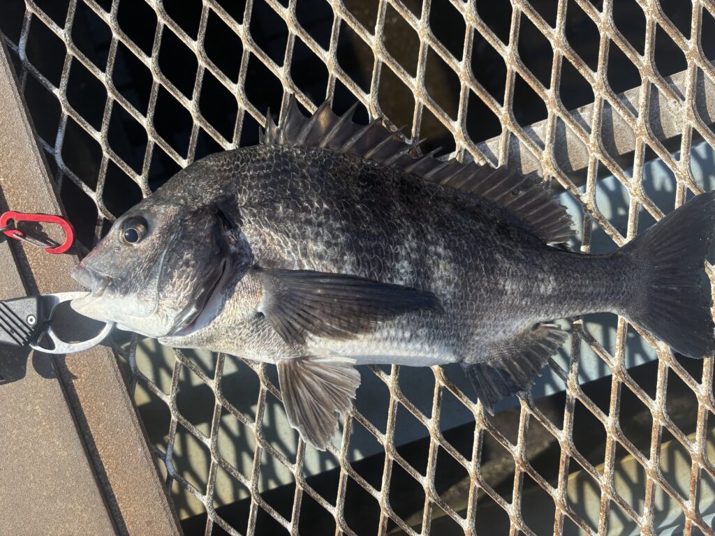 何度も耐え、浮いては潜られを繰り返し、ようやく海面に姿を見せたのは47cmの立派な黒鯛。